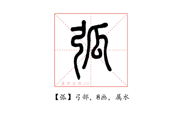 弧,木制的弓子。字形采用“弓”作边旁,“瓜”作声旁。一种说法认为,往體寡,來體多曰弧。