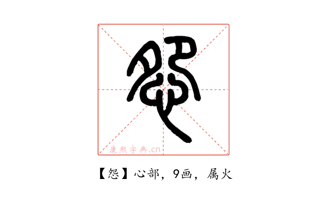 怨,藏恨于心。字形采用“心”作边旁,采用“夗”作声旁。,古文怨字。