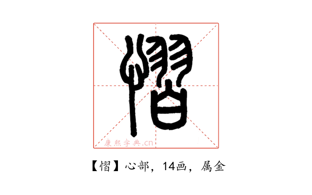 慑,丧气。字形采用“心”作边旁,采用“聶”作声旁。另一种说法认为,“慑”的意思是心服口服。