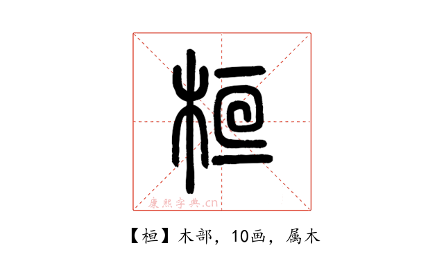 金文字形從木、亘聲,左旁的「」為「亘」的初文。「木」為樹,作為形符,表示義與樹木有關;「亘」為回旋、盤旋,於此僅作為不示義的聲符,表示音讀。篆文將「