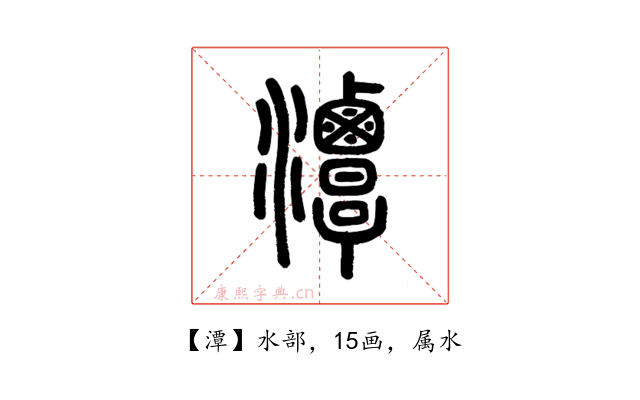 潭,深渊的水。水出于武陵鐔成玉山,向东注入鬱林。字形采用“水”作边旁,“覃”是声旁。
