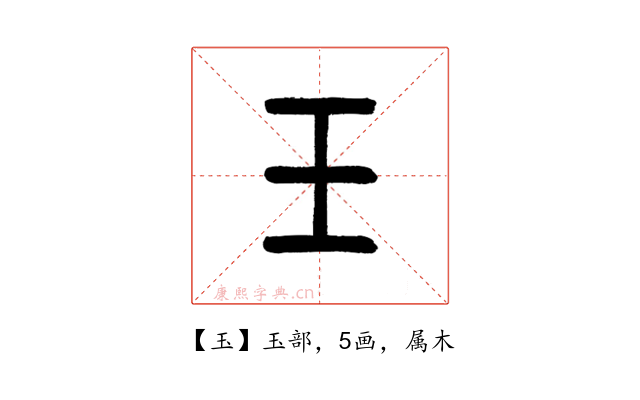 玉,最美的石头。玉有五品:润泽而温和,是仁人的比方;从外部观察纹理,可知内部真性,这是义士的比方;玉声舒展飞扬,传播 而远闻,是智士的比方;宁折不挠,是勇士的比方;锐廉而不奇巧,是廉洁之士的比方。字形像三块玉片的串连。丨,像玉串的贯绳。 所有与玉相关的字,都采用“玉”作边旁。