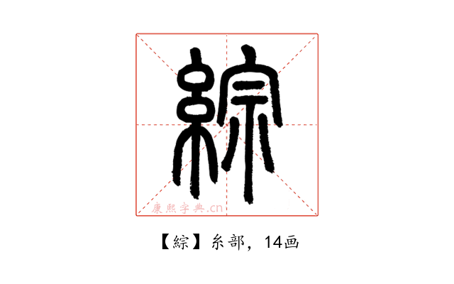 综,织机上的整排经线。字形采用“糸”作边旁,采用“宗”作声旁。