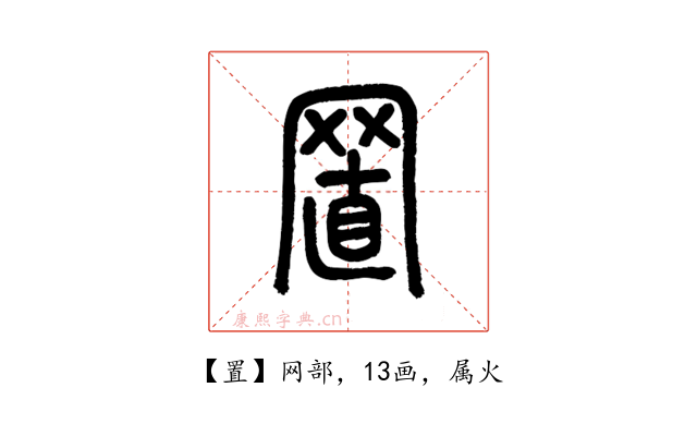 此字始見於秦簡文字,從网直,直亦聲。《說文》:「置,赦也。从网直。」段注:「置之本義為貰遣,轉之為建立。所謂變則通也。《周禮》與『廢』對文。古借為植字。徐鍇曰:『與罷同意。』是也。」字由擱置、廢置意轉而為正面的設置、增置的用法。隸、楷字形均承篆文的從网訛變為從罒。