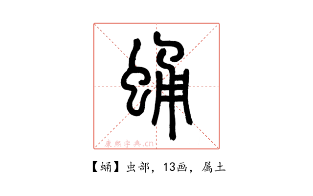 蛹,茧虫。字形采用“虫”作边旁,“甬”作声旁。