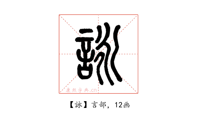 咏,歌吟。字形采用“言”作边旁,“永”作声旁。“咏”,有的“詠”采用“口”作边旁,写作“咏”。