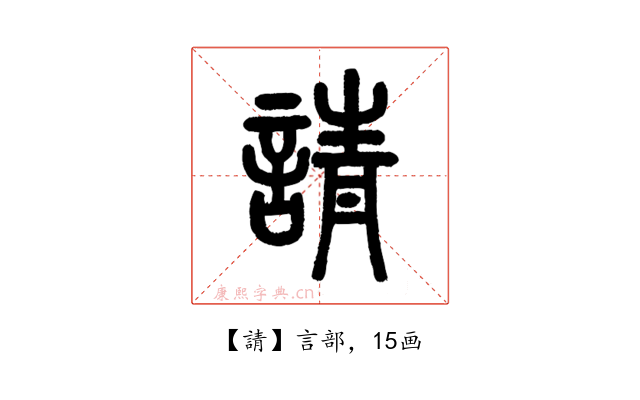 请,谒见。字形采用“言”作边旁,采用“青”作声旁。
