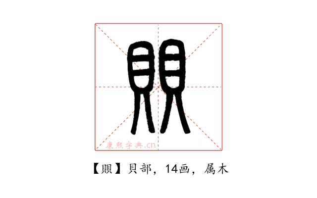 附注徐鍇繫傳:「蠻夷連貝為纓絡是也。」王筠釋例:「賏為頸飾,葢亦兩貝並垂,故其字竝而不疊,乃會意兼形之字也。」