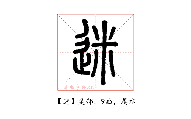 迷,因失去方向而困惑。字形采用“辵”作边旁,“米”作声旁。