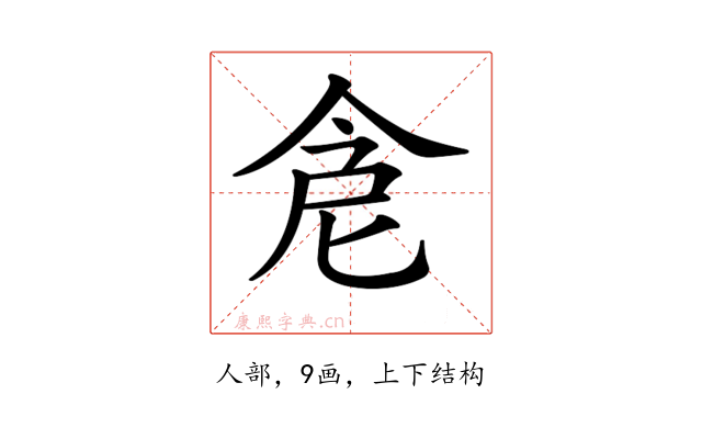 〔𠉞〕字部首是人部,总笔画是9画。