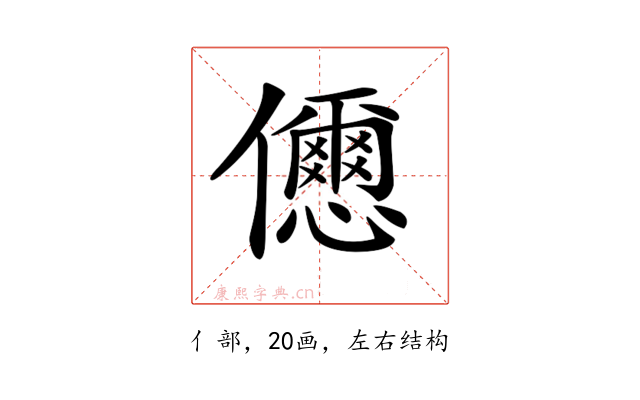 〔𠑓〕字部首是亻部,总笔画是20画。