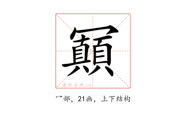 〔𠖩〕字是上下结构,可拆字为“冖、顛”。