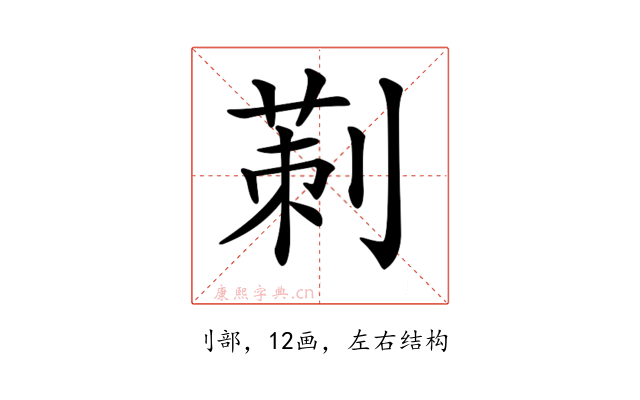 〔𠞁〕字部首是刂部,总笔画是12画。