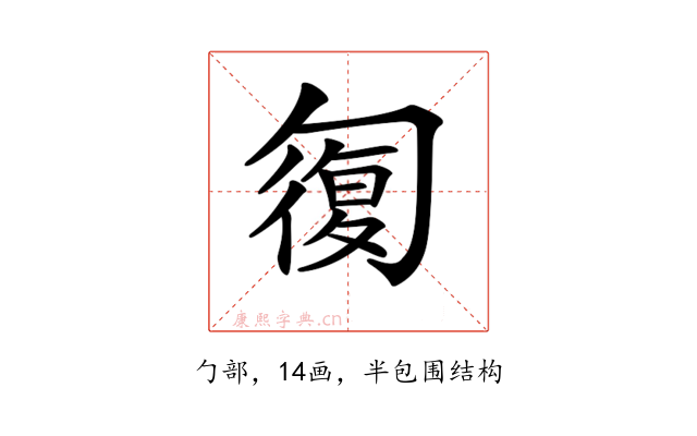 〔𠣾〕字是半包围结构,可拆字为“勹、復”。