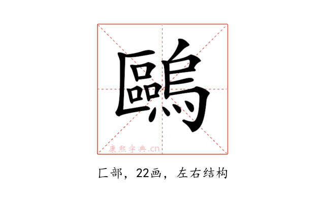 〔𠥹〕字拼音是(ōu),部首是匚部,总笔画是22画。