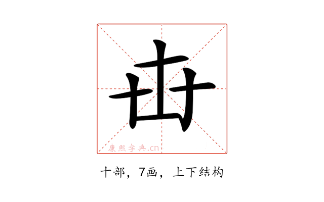 〔𠦔〕字部首是十部,总笔画是7画。
