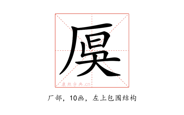 〔𠩩〕字部首是厂部,总笔画是10画。