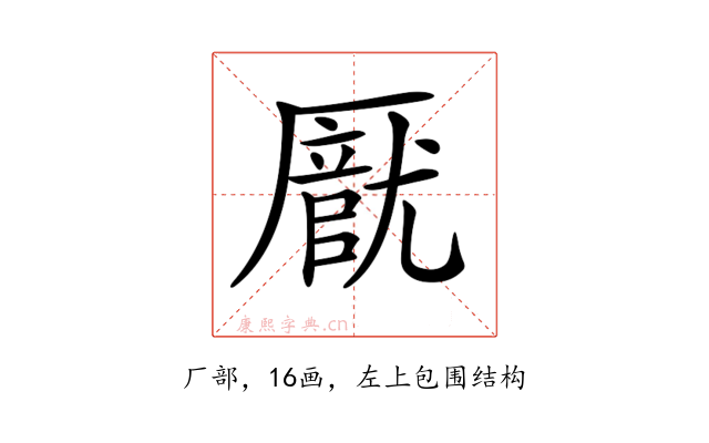 〔𠪽〕字是左上包围结构,可拆字为“厂、立、㠯、尤”或“厂、立、㠯、尤”。