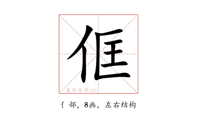 纠错〔㑌〕字拼音是(kuāng),部首是亻部,总笔画是8画。