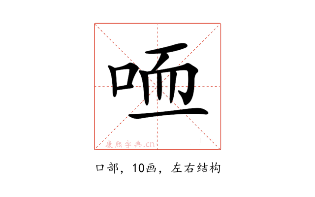 〔𠳍〕字是左右结构,可拆字为“口、𮕜”或“口、而、一”。