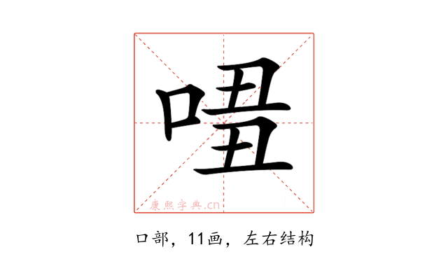 〔𠴾〕字是左右结构,可拆字为“口、丑、丑”。