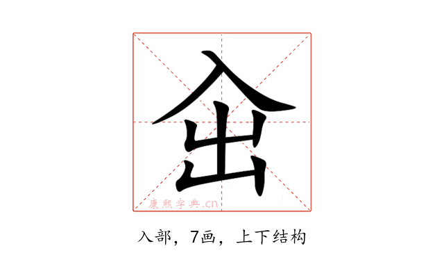 〔㒴〕字是上下结构,可拆字为“入、出”。