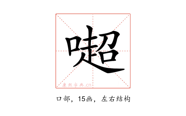 〔𠾸〕字是左右结构,可拆字为“口、超”。
