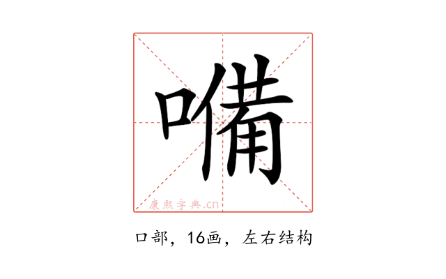纠错〔𡀠〕字部首是口部,总笔画是16画。