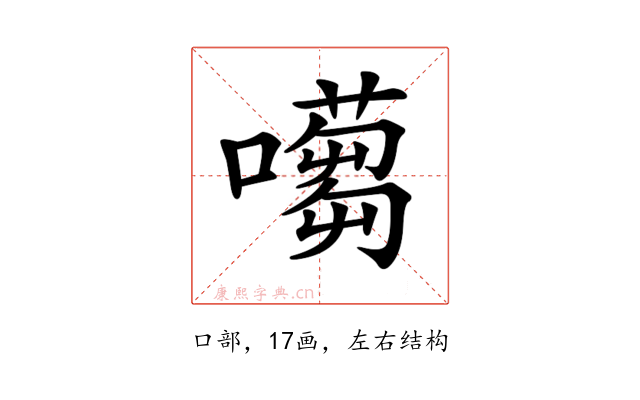 〔𡁿〕字是左右结构,可拆字为“口、蒭”。