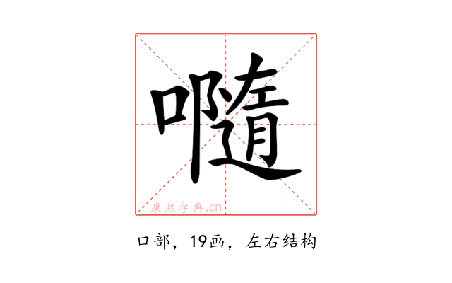 〔𡃴〕字是左右结构,可拆字为“口、隨”。