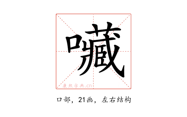 〔𡅆〕字是左右结构,可拆字为“口、藏”。