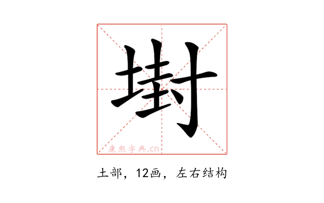 〔𡎈〕字是左右结构,可拆字为“土、封”。