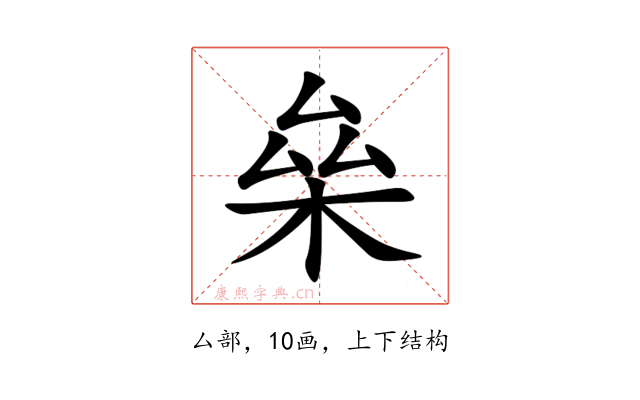 〔㕖〕字是上下结构,三叠字 (含三叠字结构),可拆字为“厽、木”或“厽、朩”。