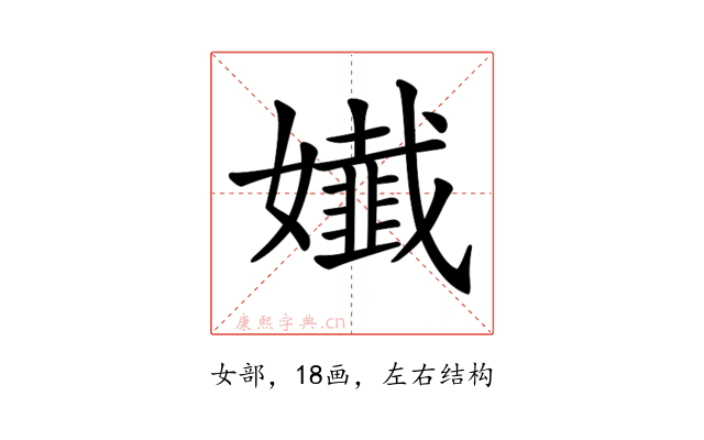 〔𡣳〕字拼音是(xiān),部首是女部,总笔画是18画。
