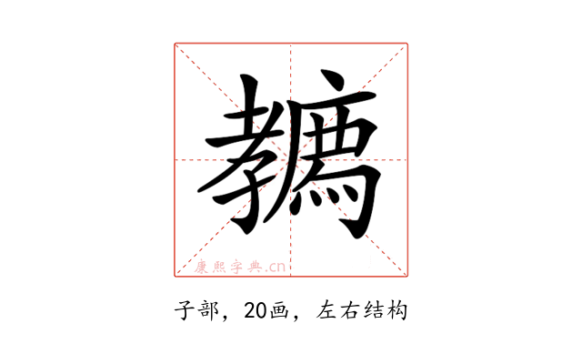 纠错〔𡦳〕字拼音是(xiào),部首是子部,总笔画是20画。