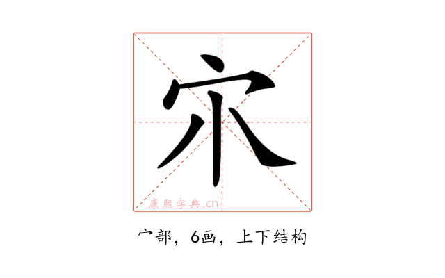 〔𡦾〕字部首是宀部,总笔画是6画。
