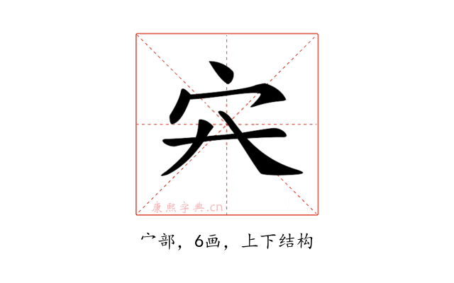 〔𡦿〕字部首是宀部,总笔画是6画。