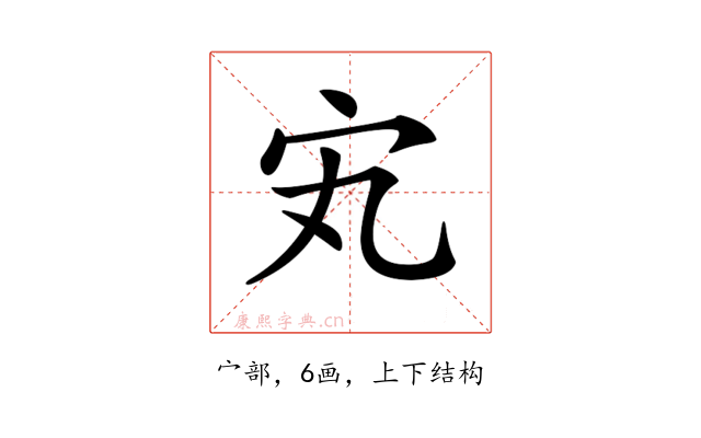 〔𡧄〕字拼音是(guǐ),部首是宀部,总笔画是6画。