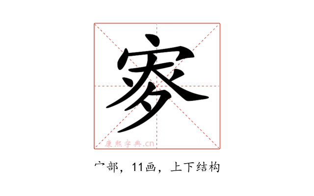 〔𡨨〕字部首是宀部,总笔画是11画。
