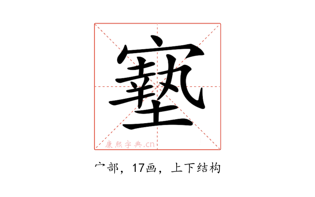 𡫓〕字是上下结构,可拆字为“宀、墊”。