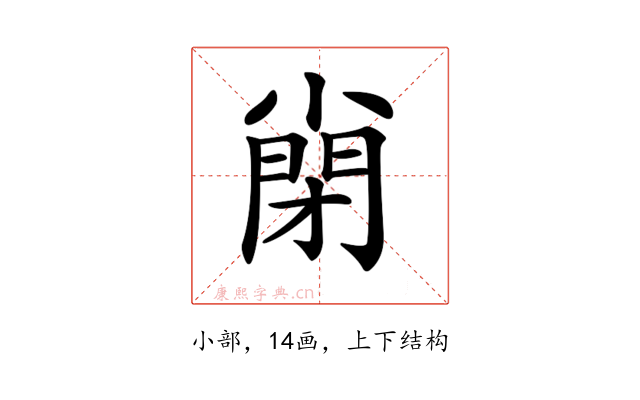 〔𡮣〕字是上下结构,可拆字为“小、閉”。