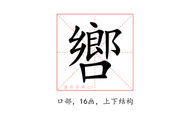 纠错〔㗽〕字拼音是(xiǎng),部首是口部,总笔画是16画。