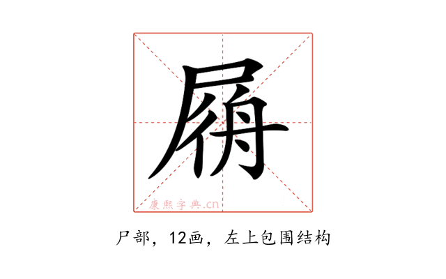 〔𡲟〕字部首是尸部,总笔画是12画。