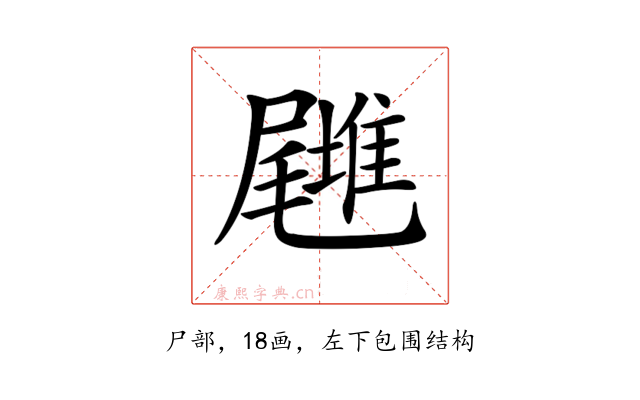 〔𡳪〕字部首是尸部,总笔画是18画。