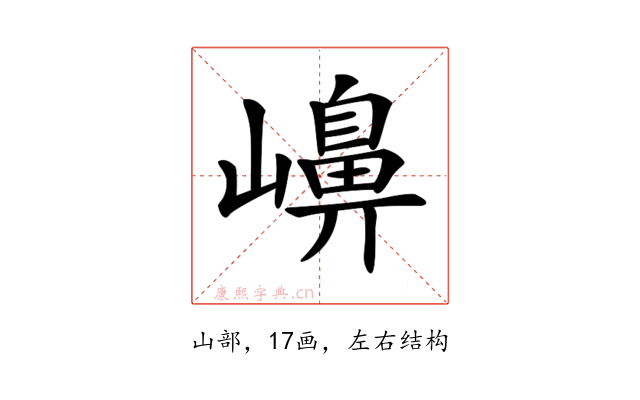 〔𡽶〕字是左右结构,可拆字为“山、鼻”。