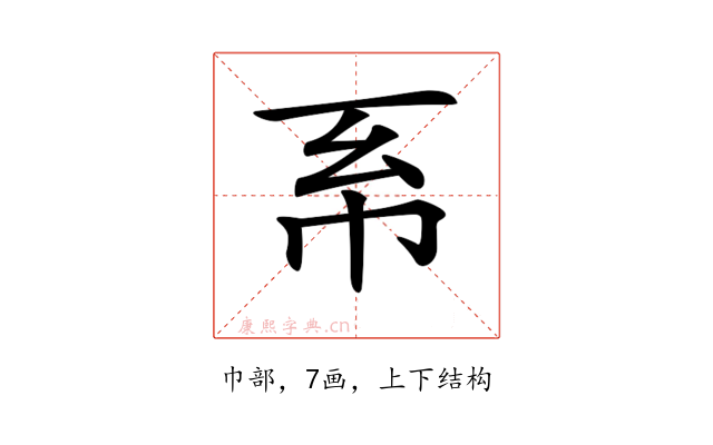 〔𢁴〕字部首是巾部,总笔画是7画。