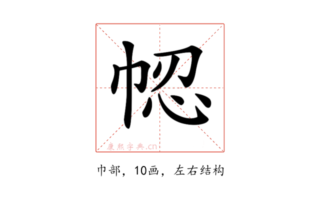 〔𢂻〕字部首是巾部,总笔画是10画。
