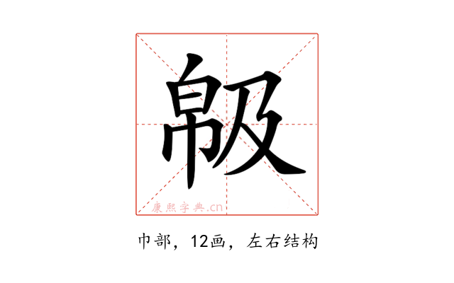〔𢃺〕字拼音是(jí),部首是巾部,总笔画是12画。
