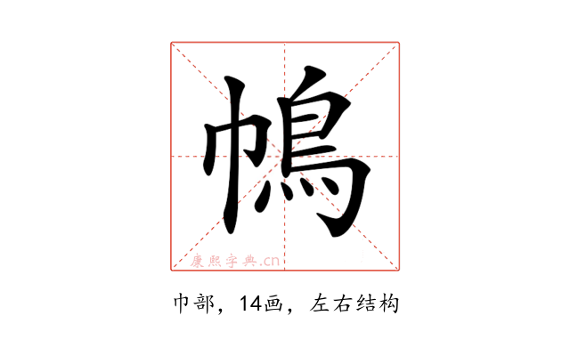 〔𢄦〕字是左右结构,可拆字为“巾、鳥”。