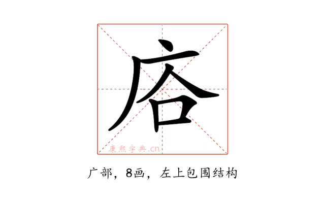 〔𢈁〕字是左上包围结构,可拆字为“庂、口”或“广、𠆢、口”。